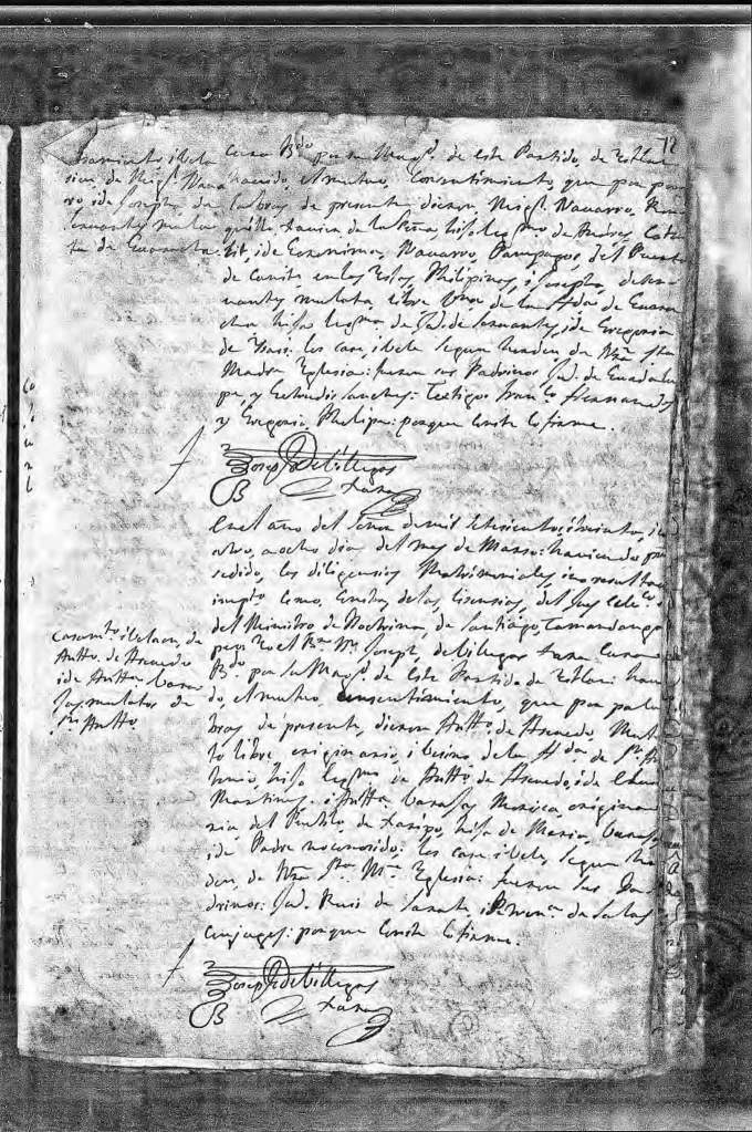 El 7 de marzo de 1734 contrajo matrimonio en la parroquia de Santiago Apóstol, Sahuayo, Michoacán, México, Miguel Navarro Ronquillo Xamira de la Peña. Dijo ser un pampango del puerto de Cavite en las Islas Filipinas 🇵🇭. Dijo además ser hijo legítimo de Andres Catulid y de Erminia Navarro. Contrajo matrimonio con Josefa de Cervantes, mulata libre de la Hacienda de Guaracha, actualmente perteneciente al municipio de Villamar, Michoacán, hija legítima de Juan de Cervantes y de Eugenia de Ysmi.