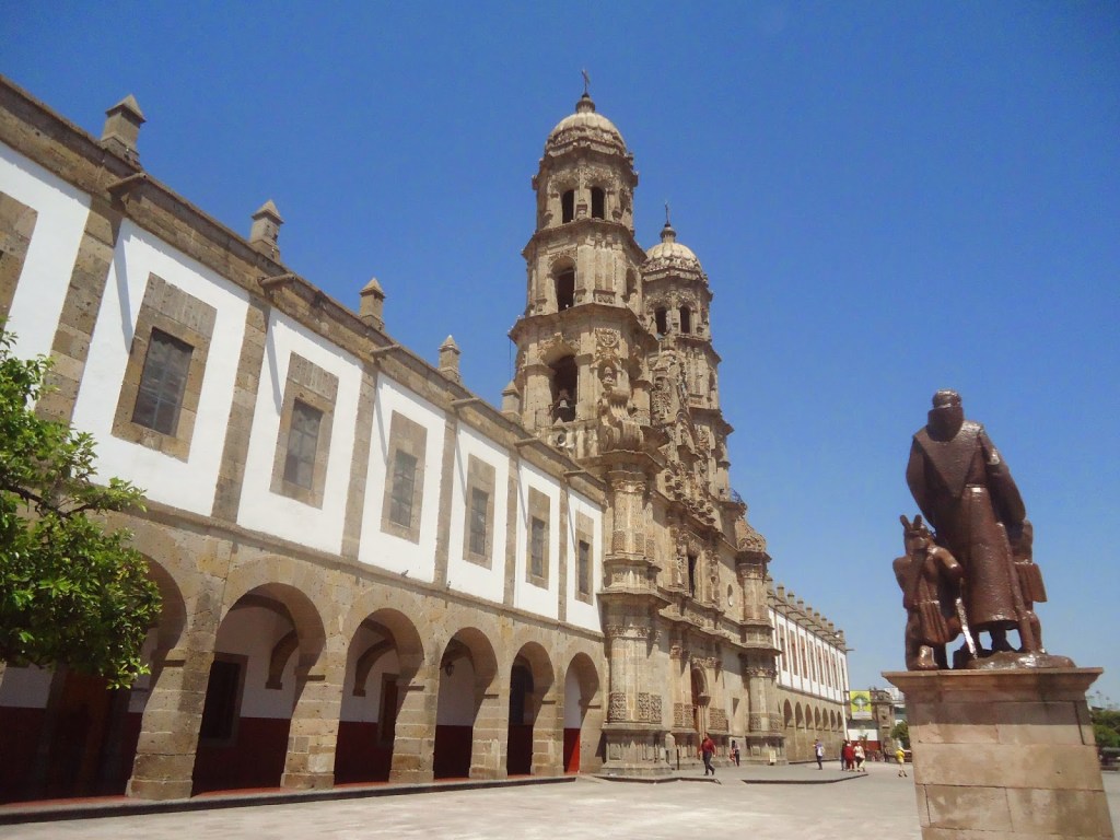 Atrio de la Basílica de Zapopan, en la que se yergue una estatua de Fray Antonio de Segovia. Fotografía del blog de San Carlos Fortín.