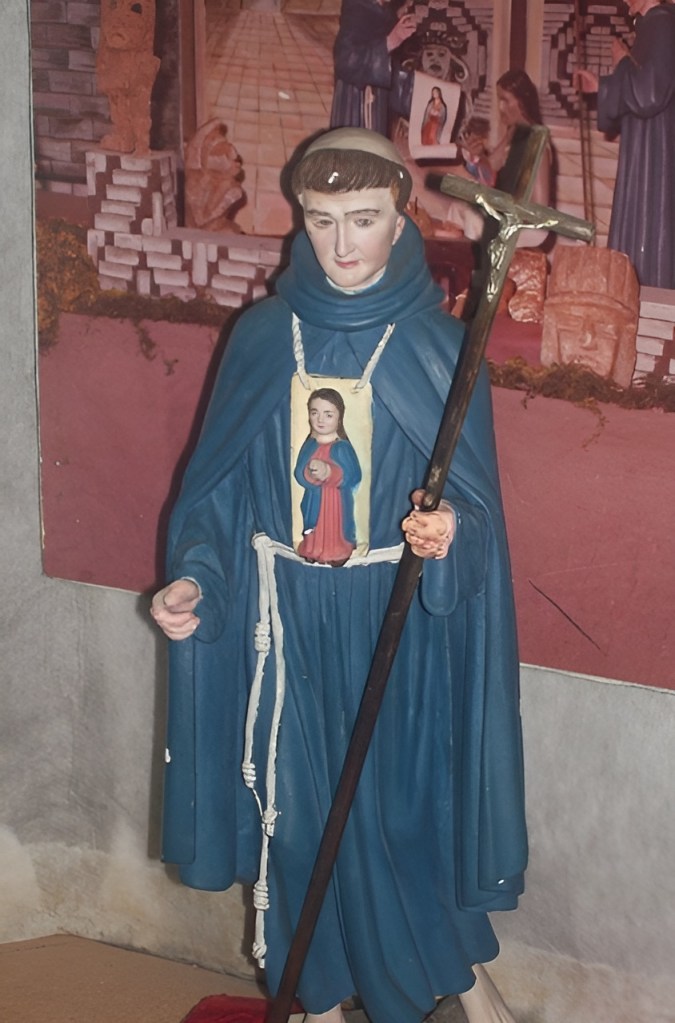 Fray Antonio de Segovia; Imagen del Apóstol de la Nueva Galicia con la imagen de la Virgen colgada al pecho. Fotografía subida a Wikipedia por Héctor Josué Quintero. Imagen mejorada por la autora.