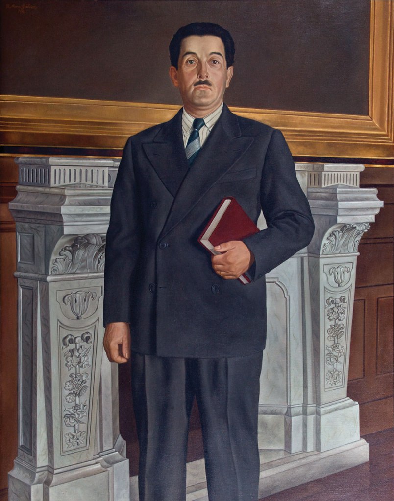 Lic. Silvano Barba González (1895-1967), quien reglamentó el decreto 2801 concerniente a la cantidad máxima de sacerdotes que, en 1926, podían ejercer su ministerio en Jalisco. Retrato de Rubén Mora Gálvez (1895-1977), artista originario de Sahuayo, Michoacán, pintor oficial de los rectores de la Universidad de Guadalajara y de los gobernadores del Estado de Jalisco.